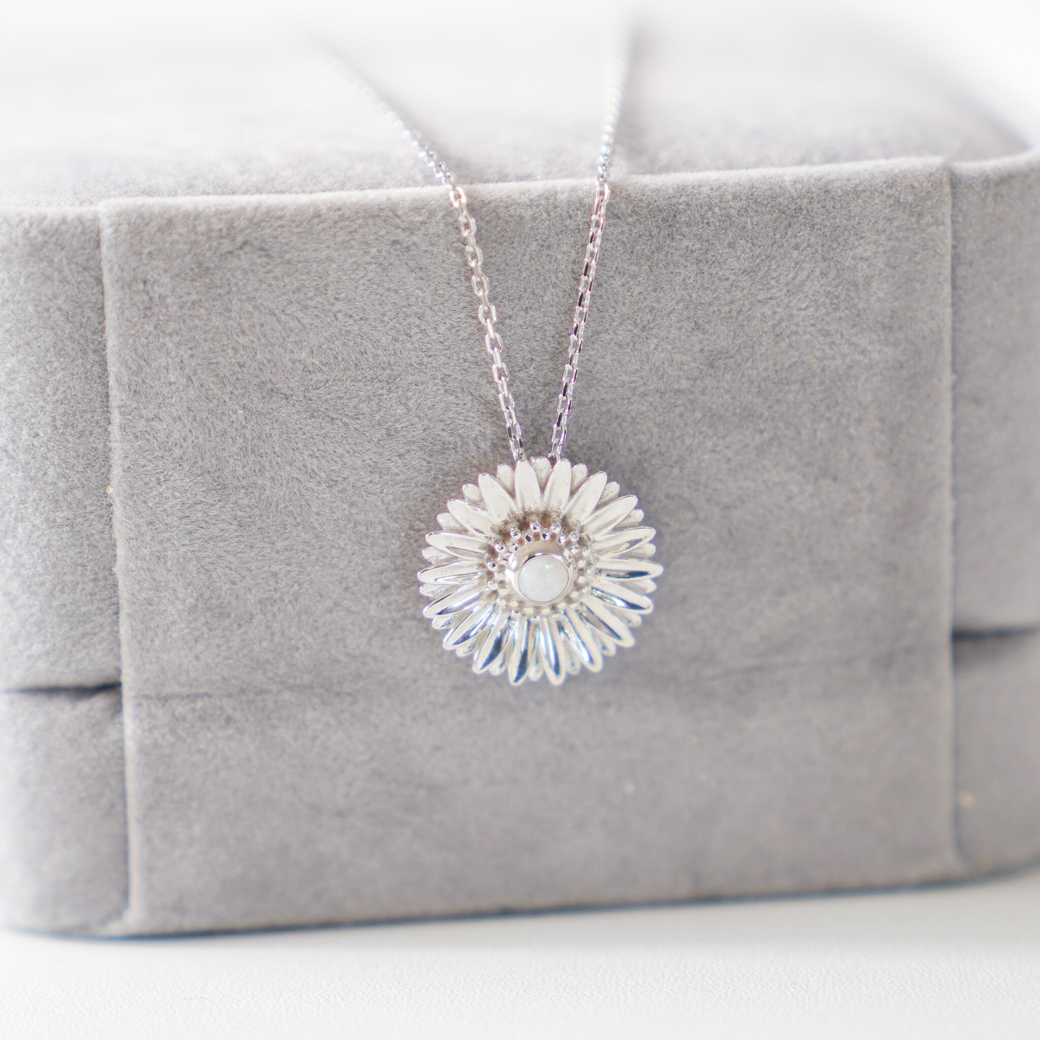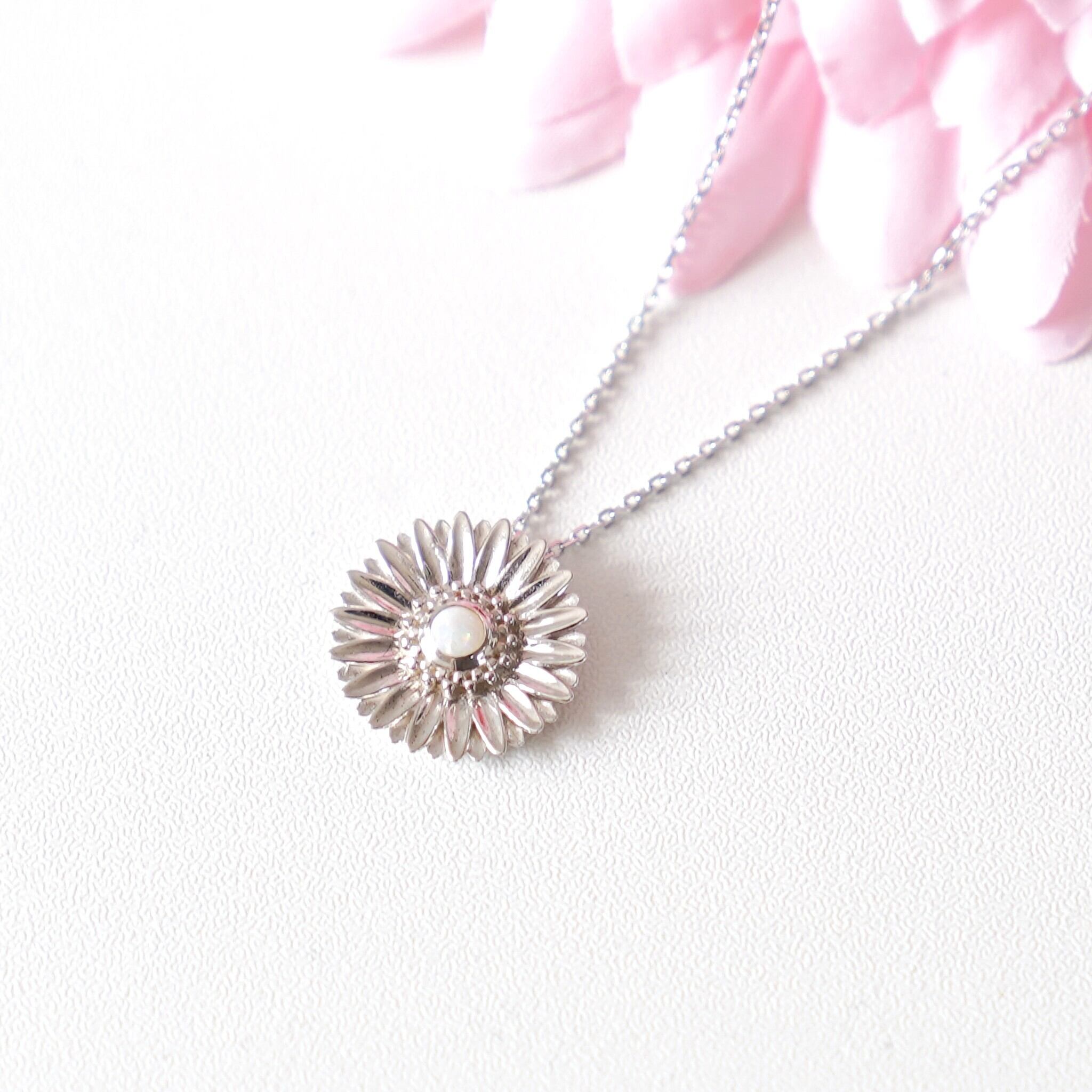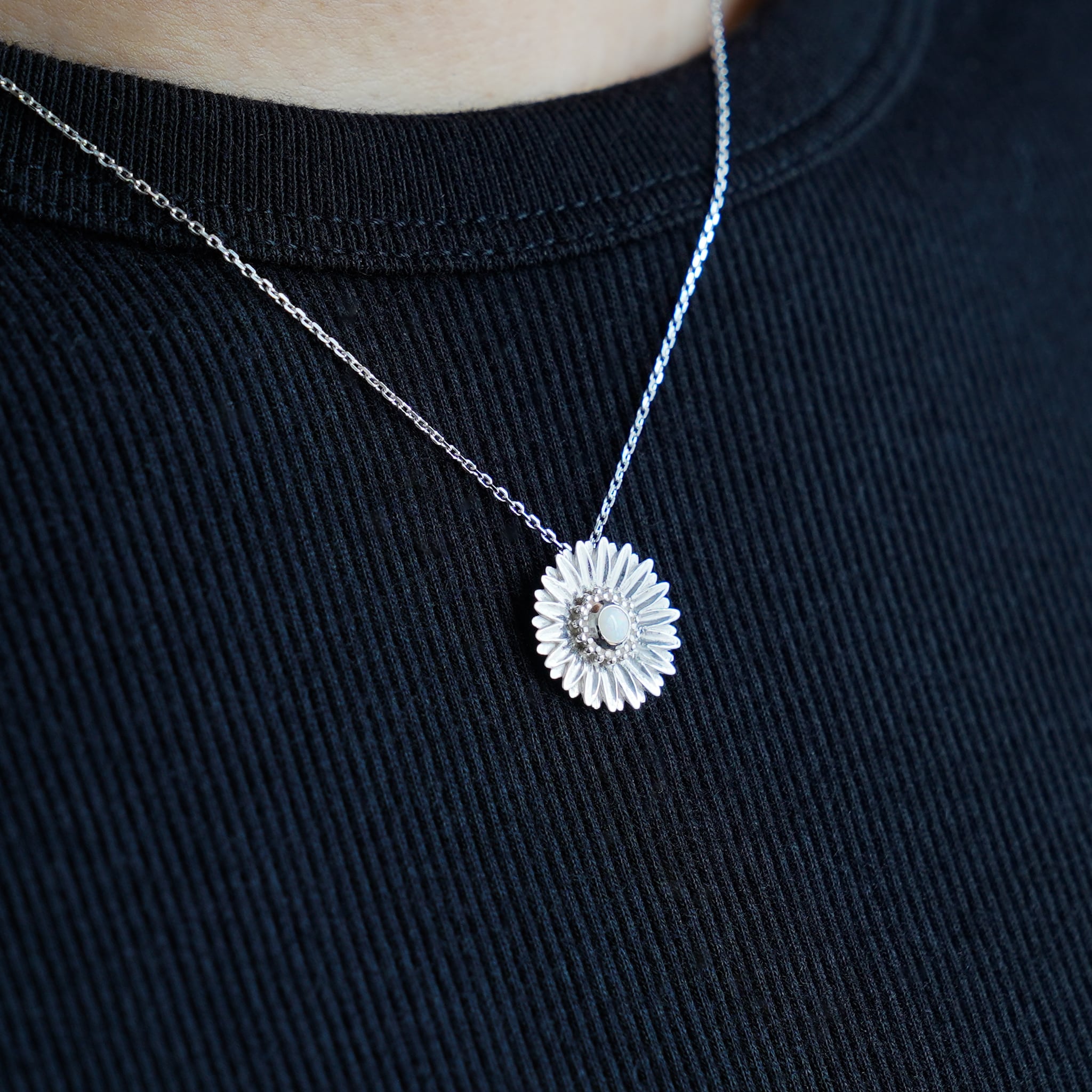 【10月誕生石】大輪のガーベラネックレス オパール シルバー《送料無料》花 フラワー