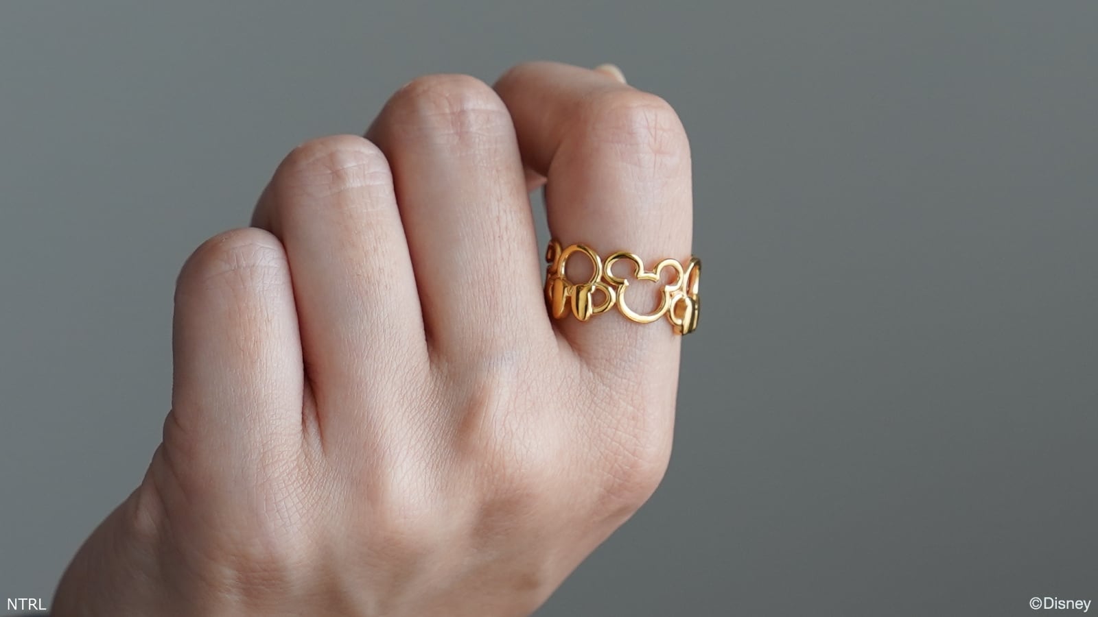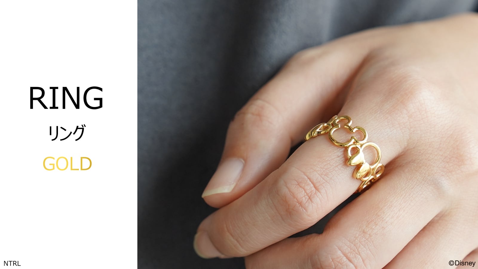ミッキーとミニーが上下交互に繋がったキュートなリング。