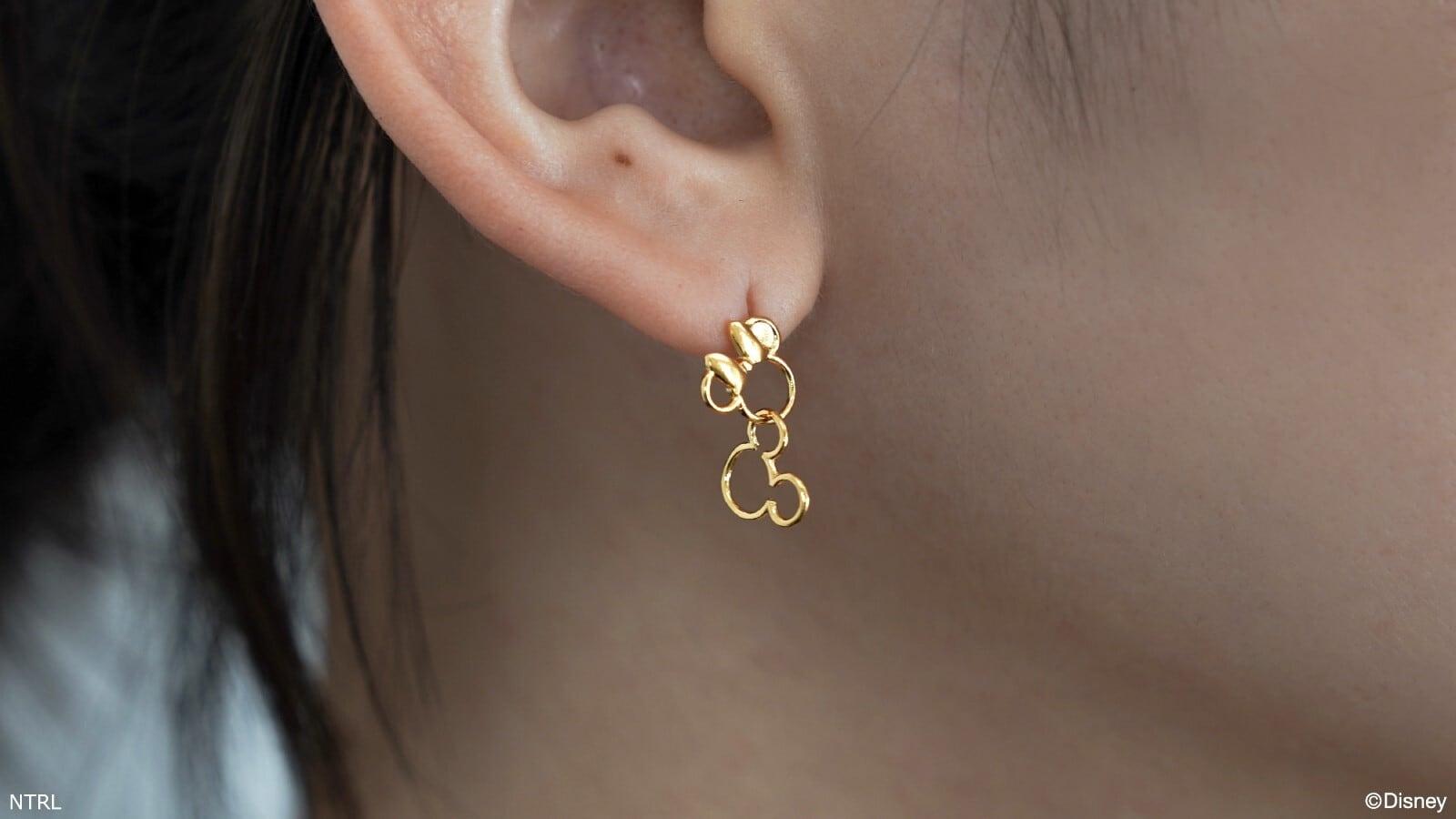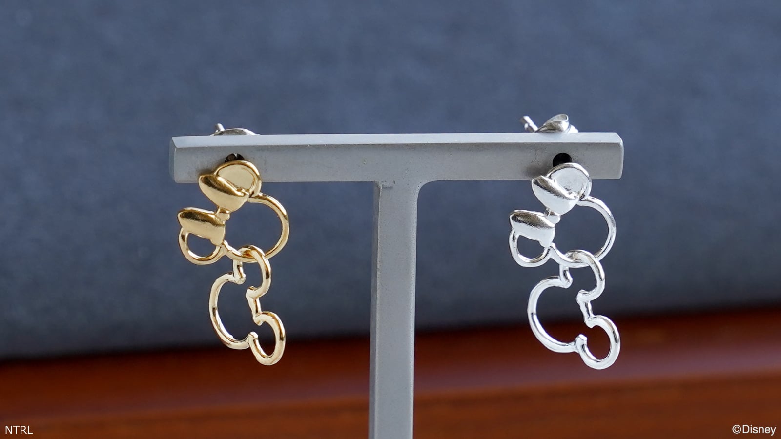 ミッキーとミニーがひとつずつ繋がったTWINデザインピアス。