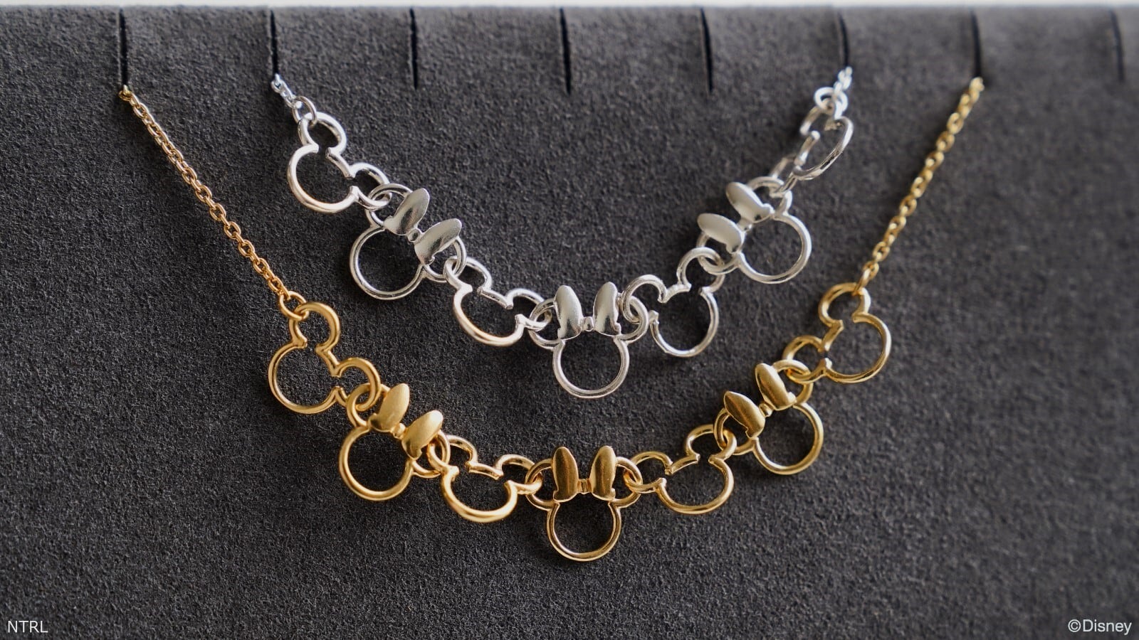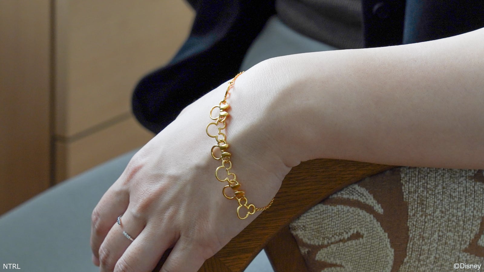 ブレスレットの半分をミッキーとミニーで繋げた贅沢なブレスレット。