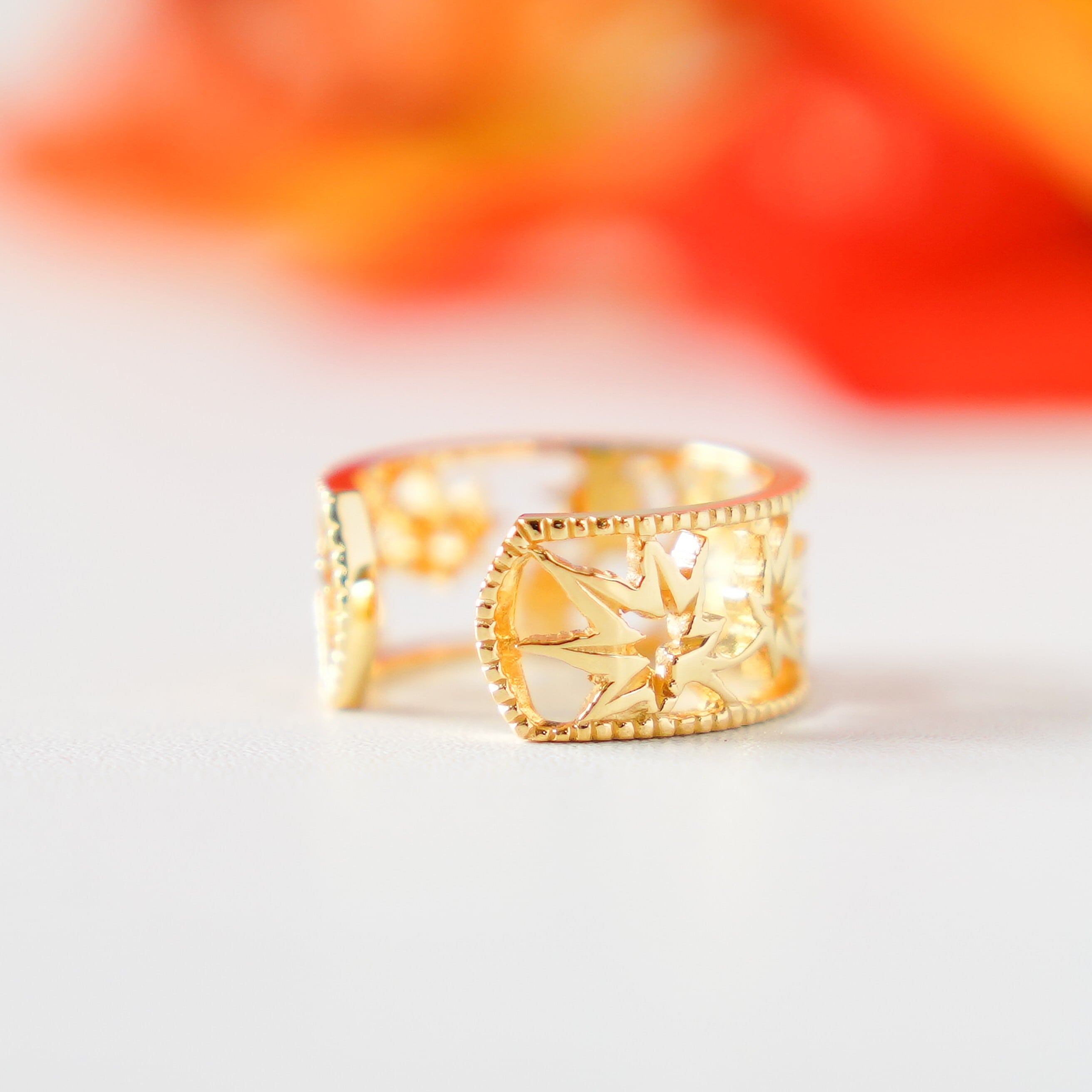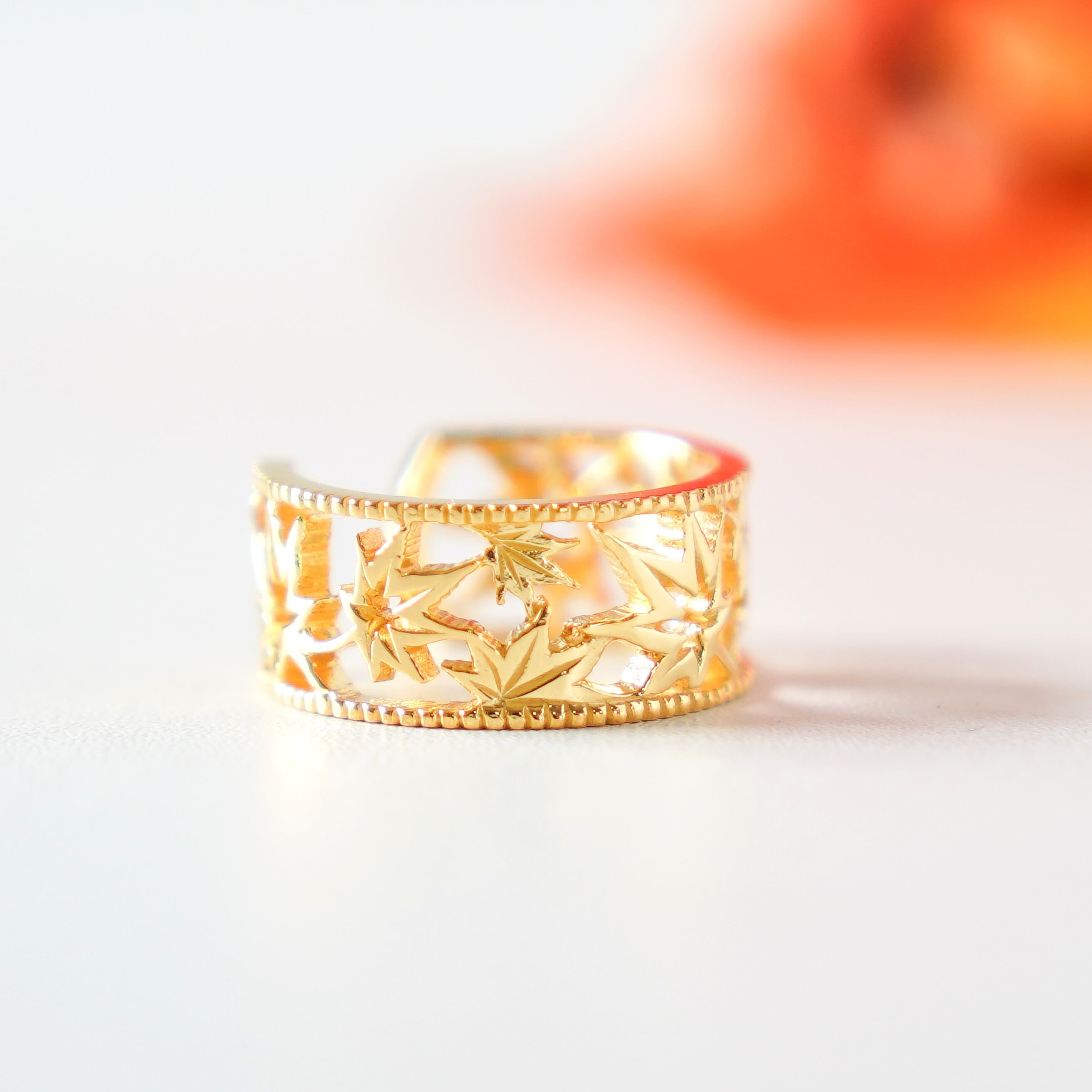 移う紅葉の透かしオープンリング ゴールド《送料無料》もみじ 秋
