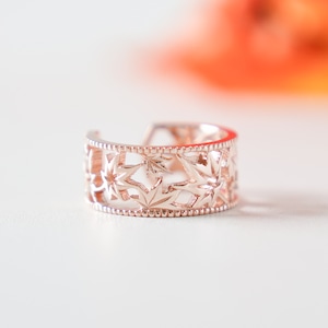 移う紅葉の透かしオープンリング ピンクゴールド《送料無料》もみじ 秋