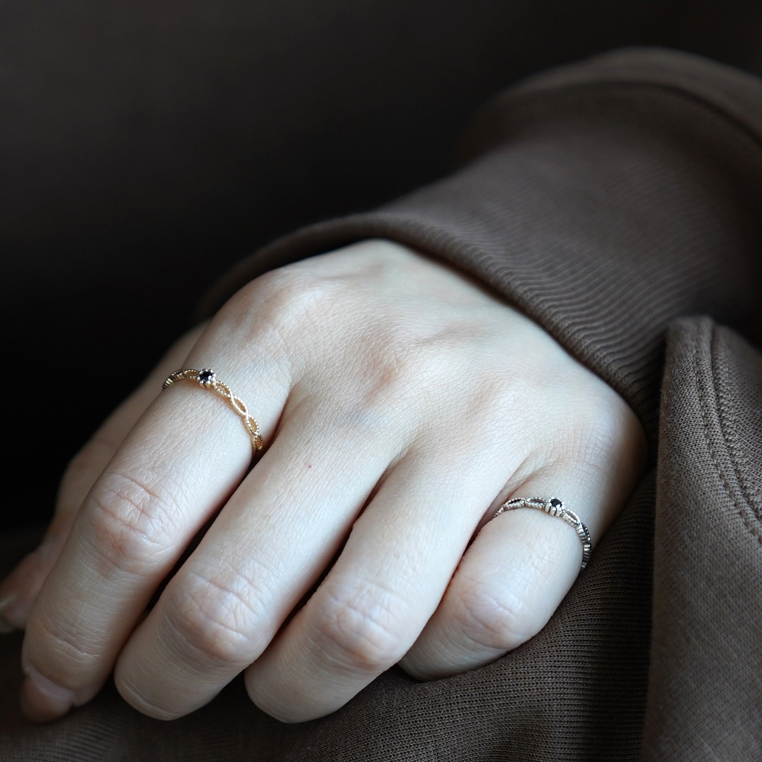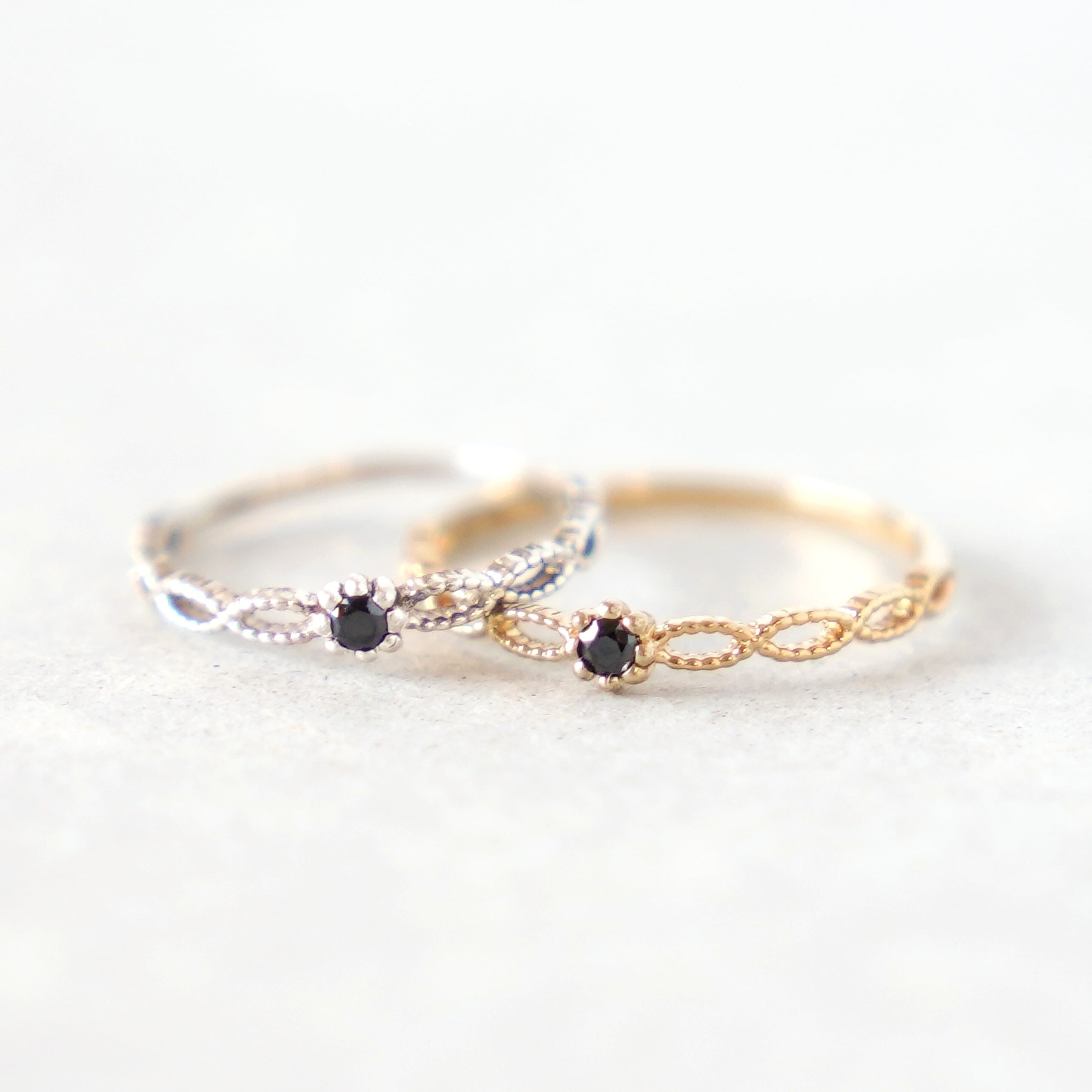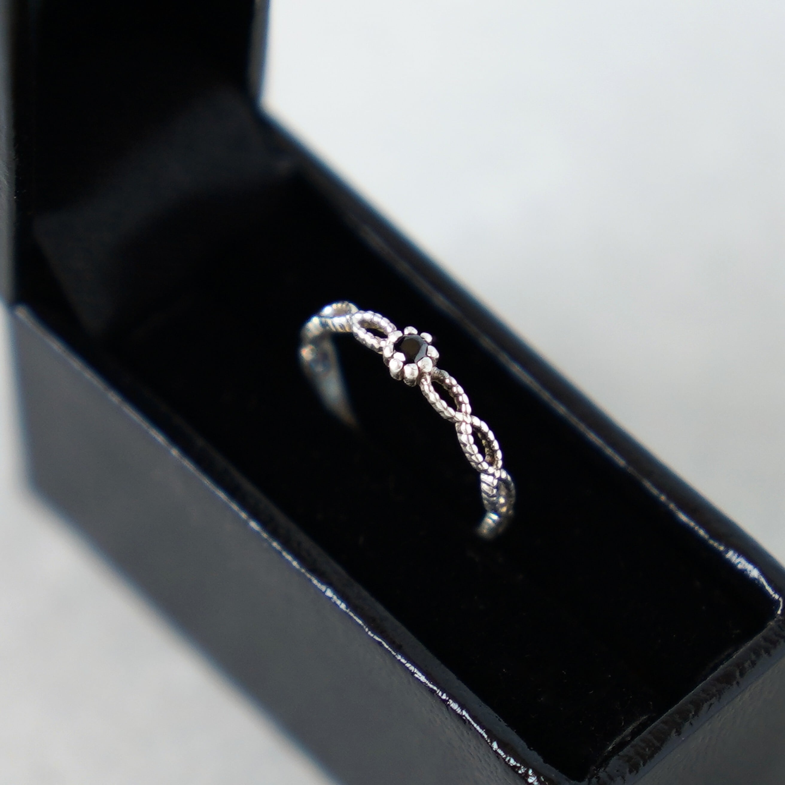 小粒ブラックダイヤモンド 透かしミルピンキーリング《送料無料》天然石/