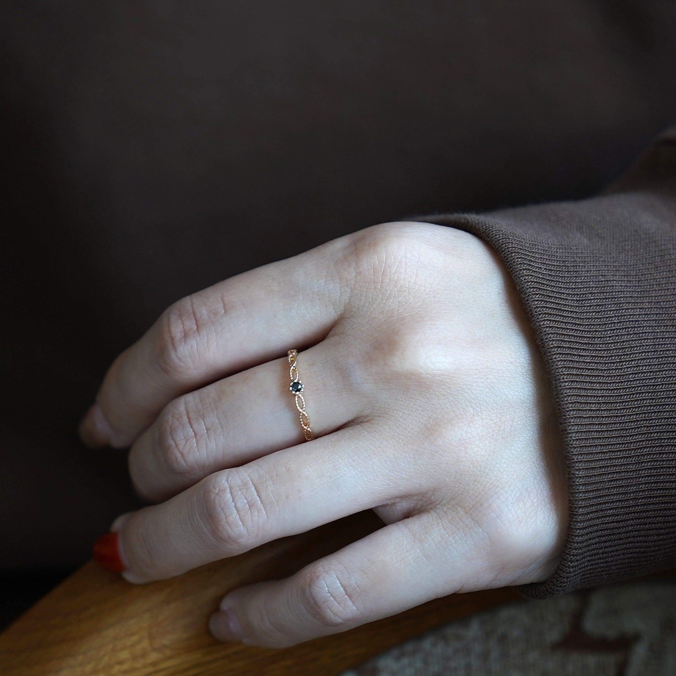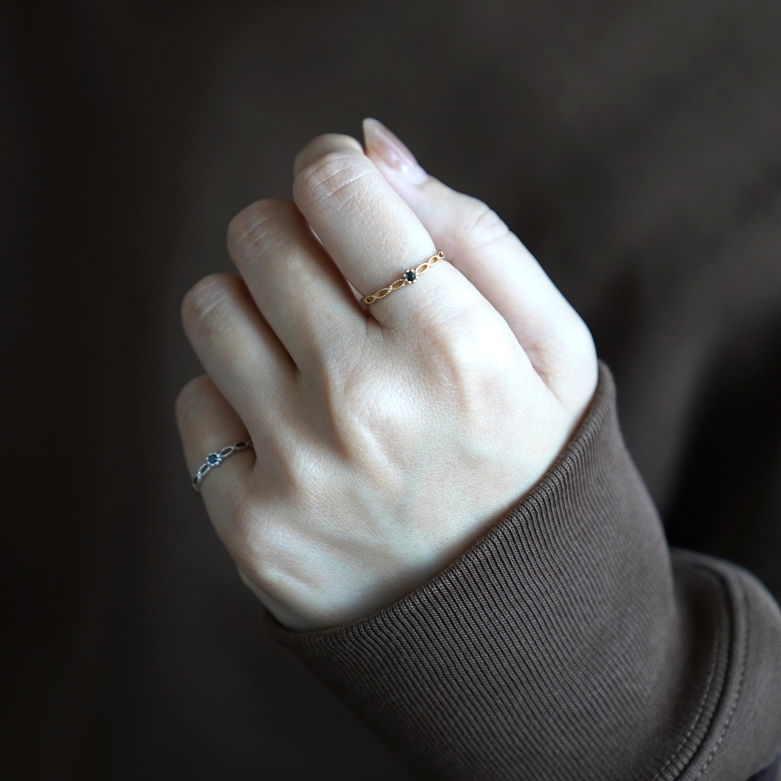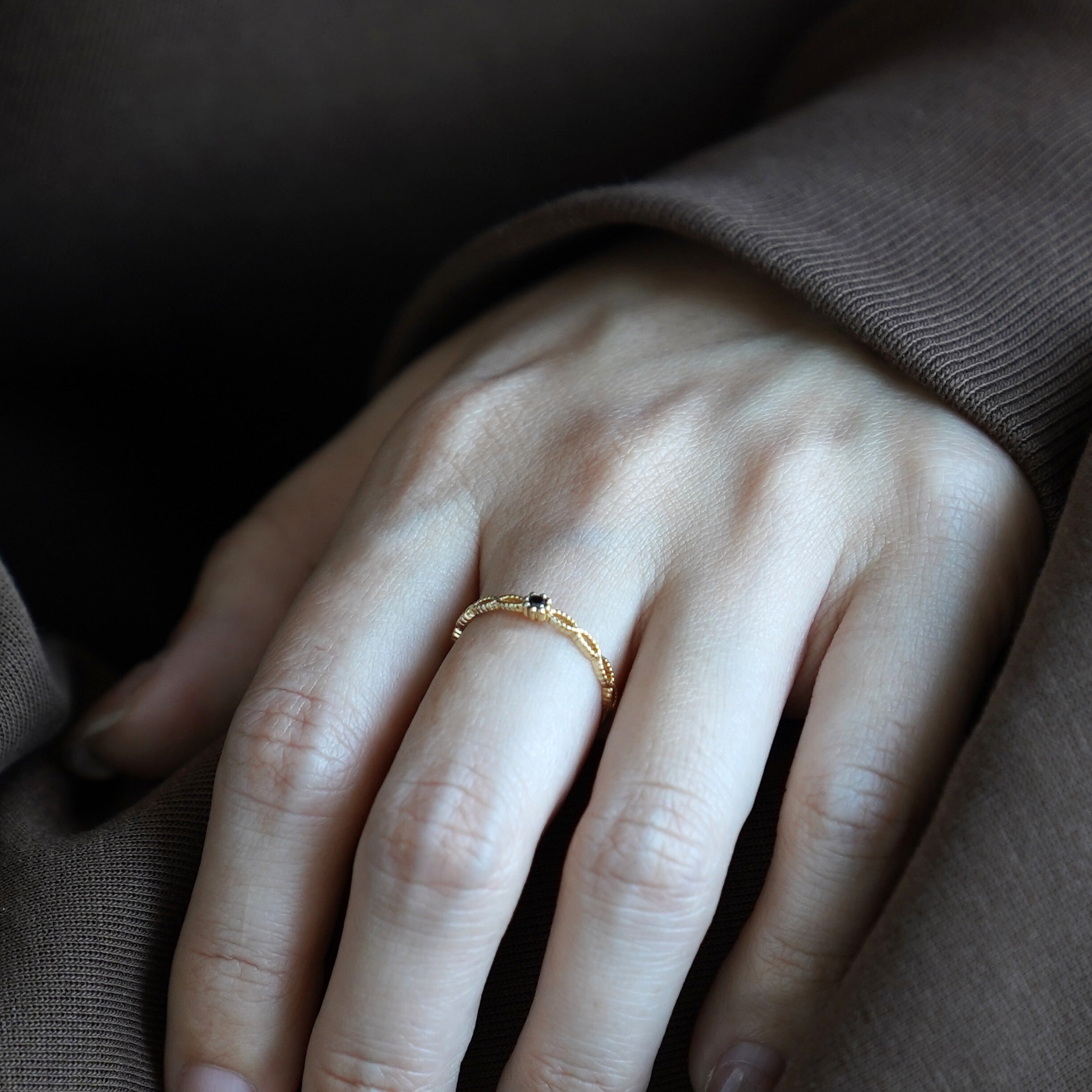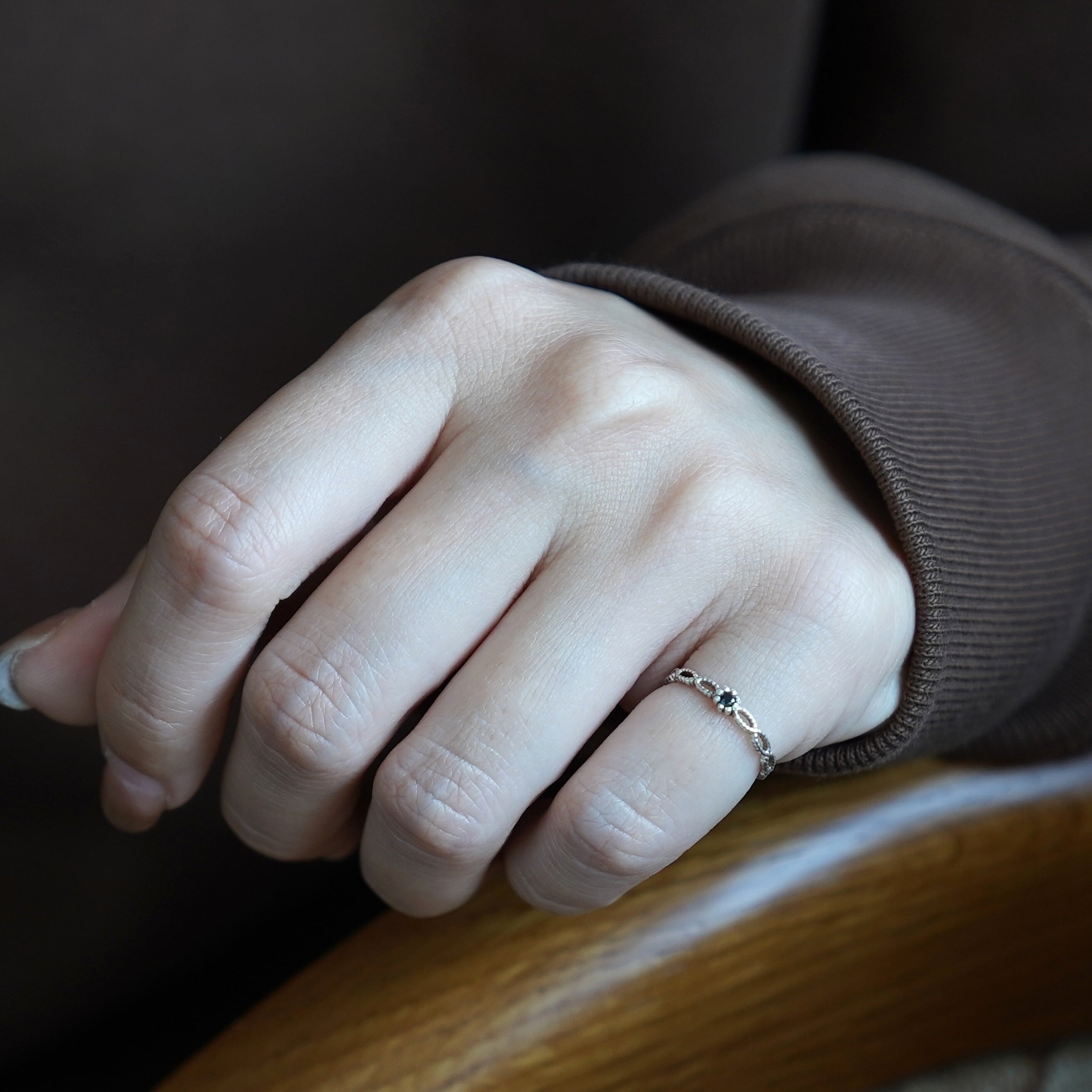 小粒ブラックダイヤモンド 透かしミルピンキーリング《送料無料》天然石/