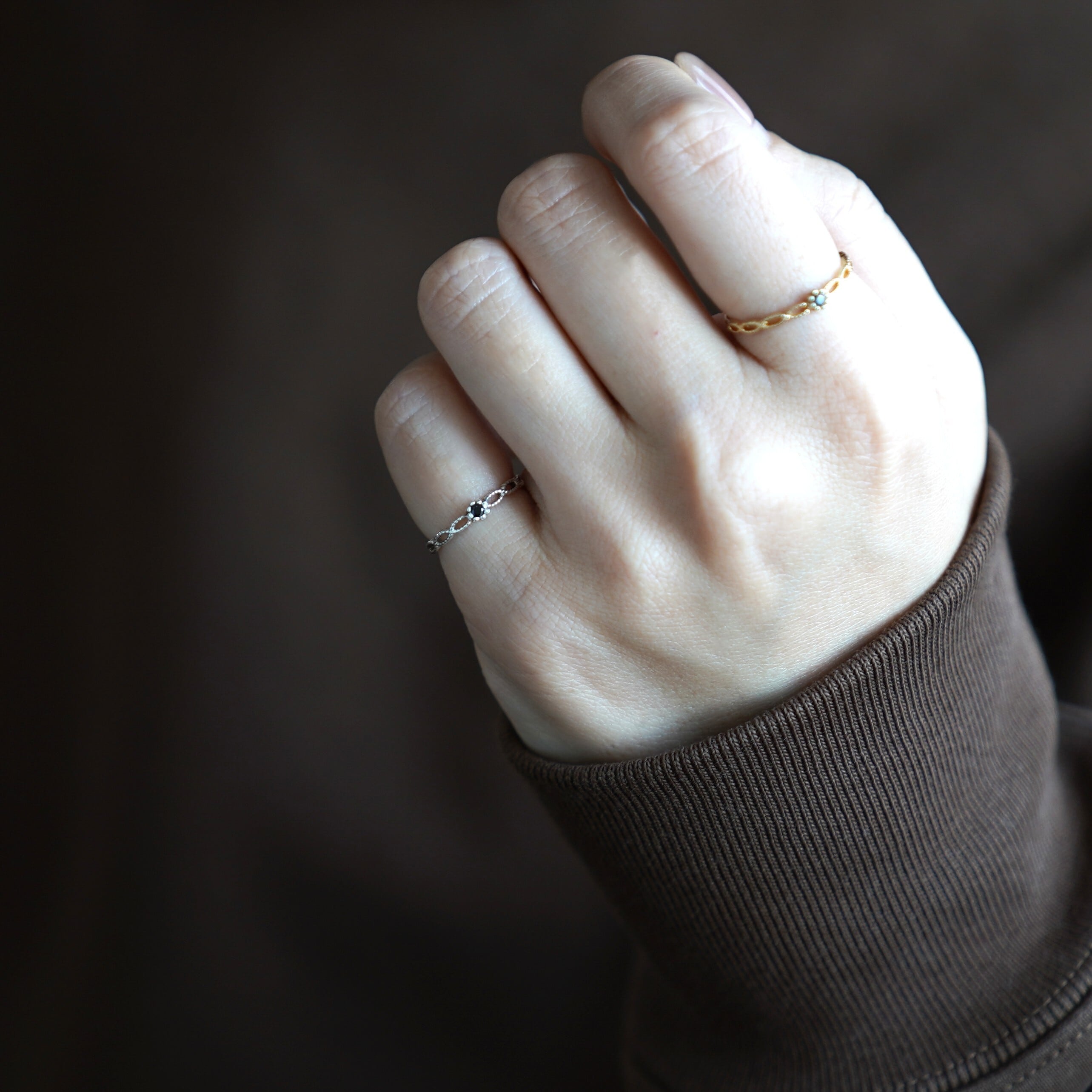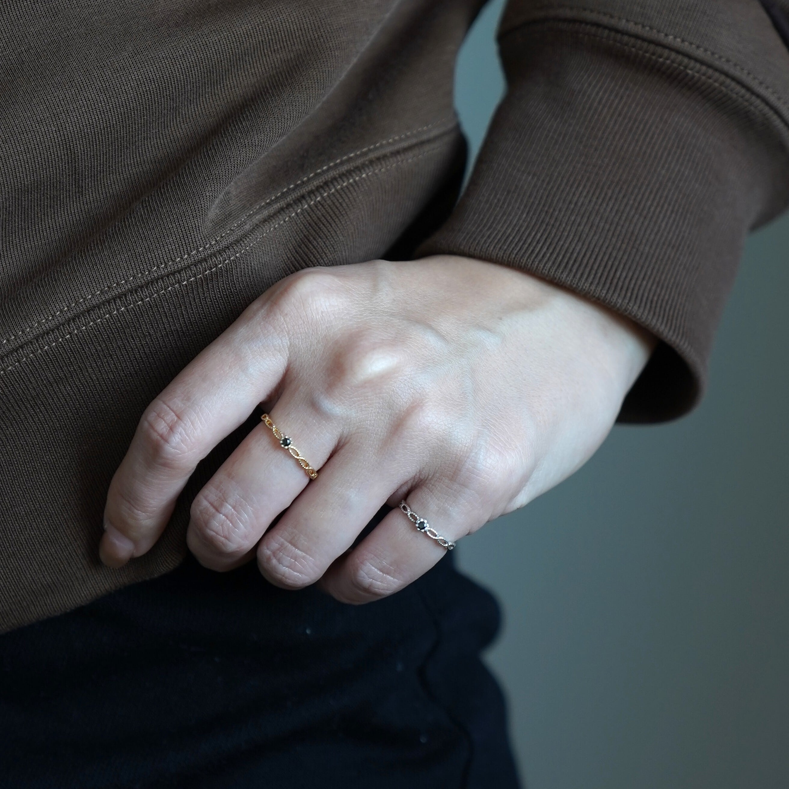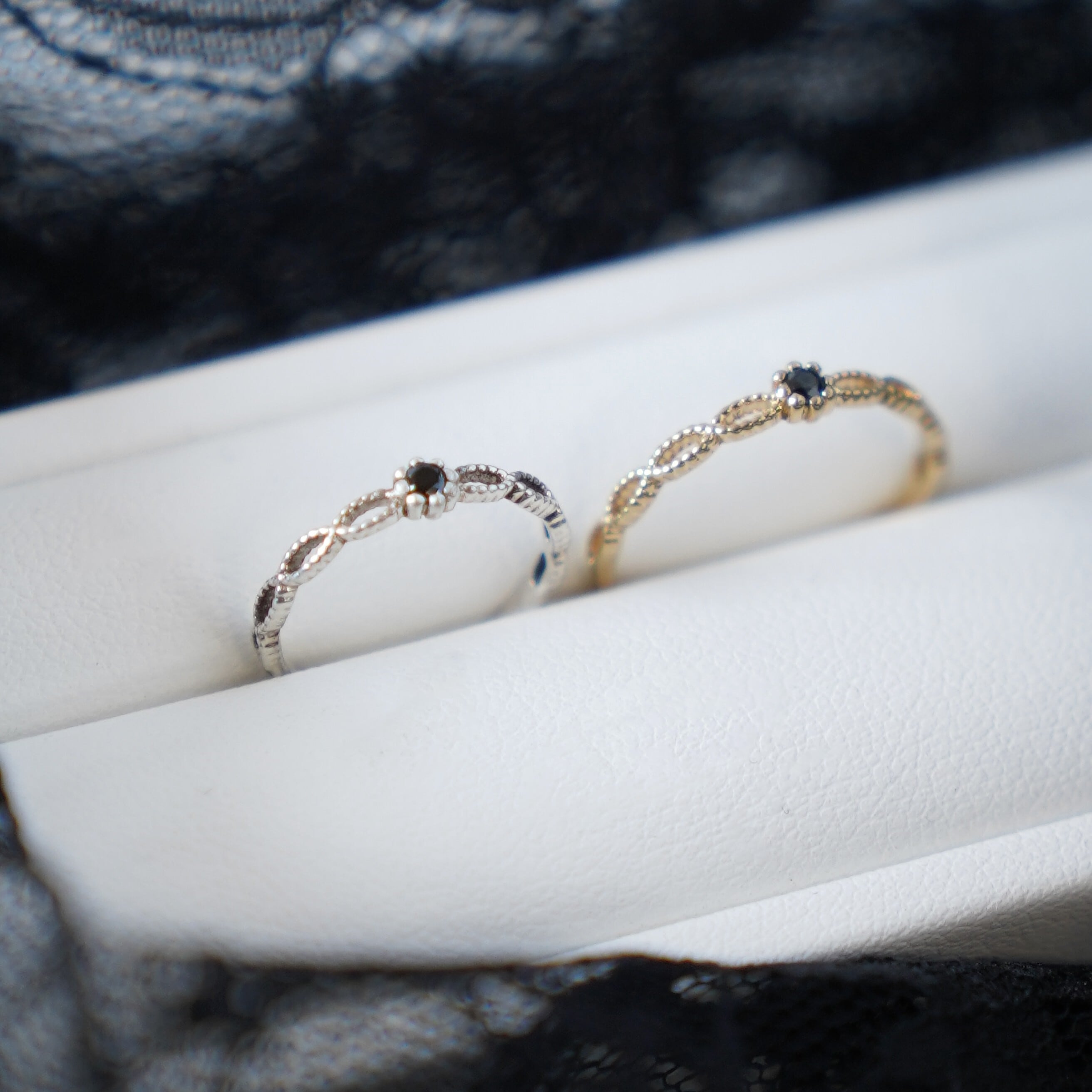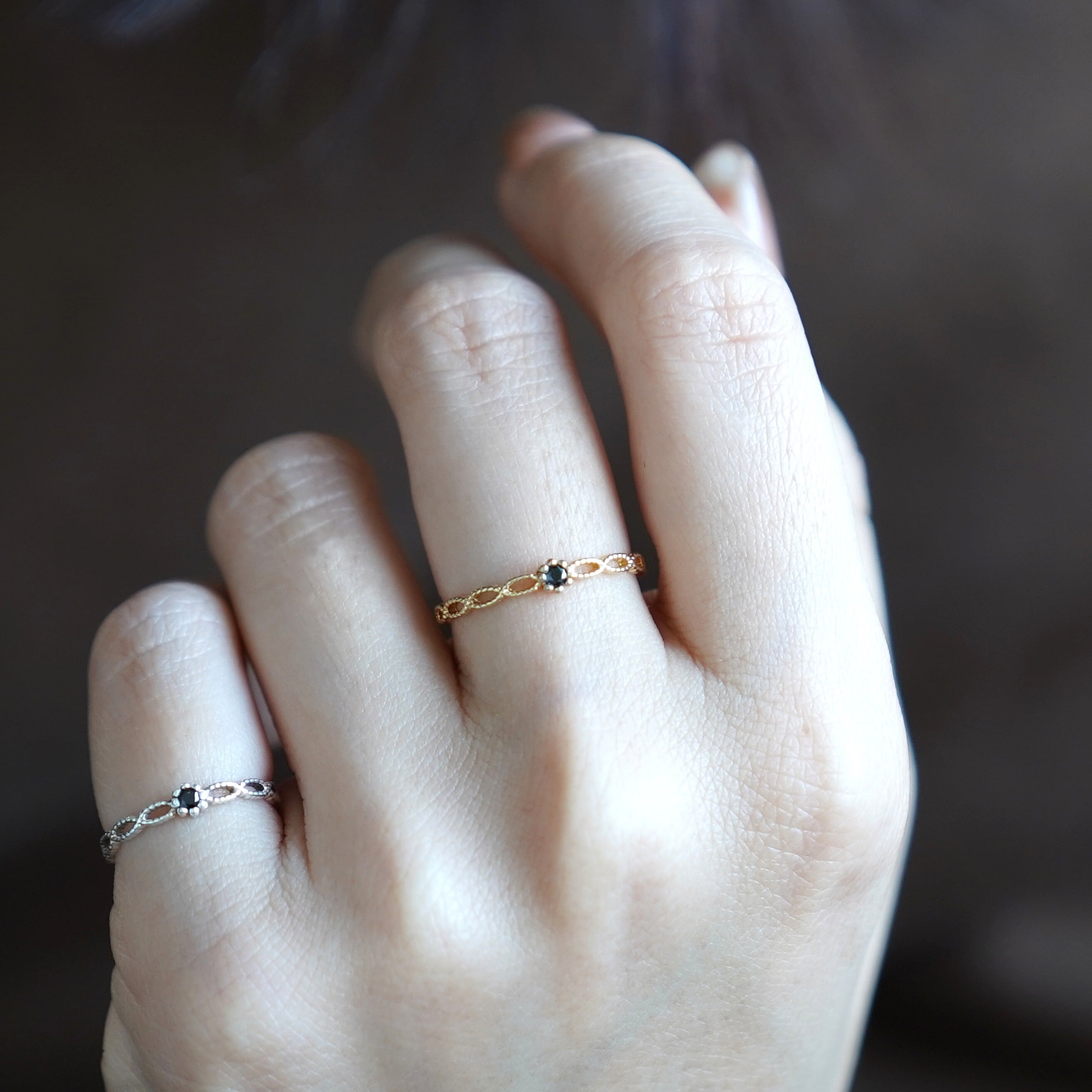 おすすめはピンキーリング。小さい1石のブラックダイヤが映えます。
