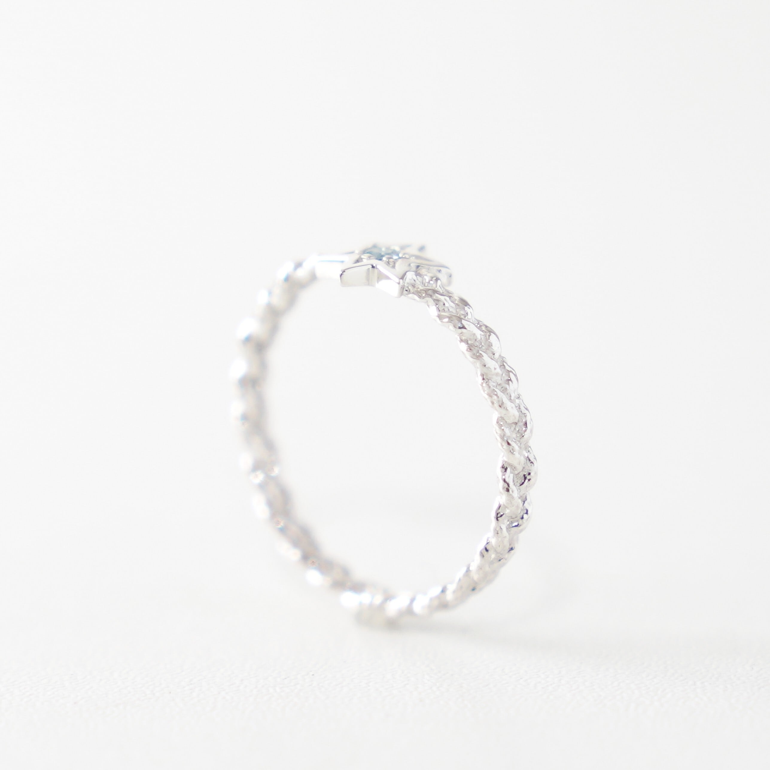 三つ編み模様のアームも合わさり個性を放つリングです。