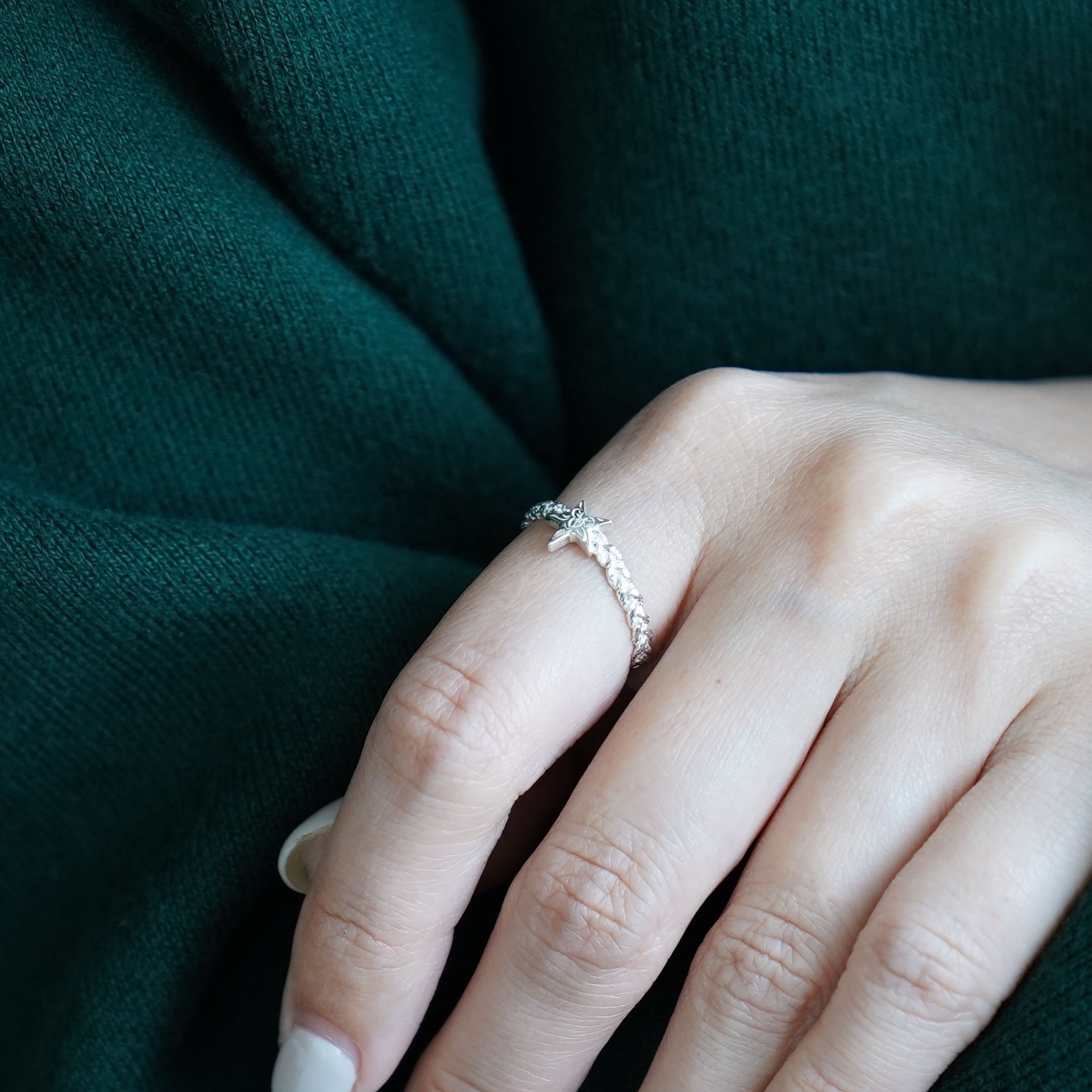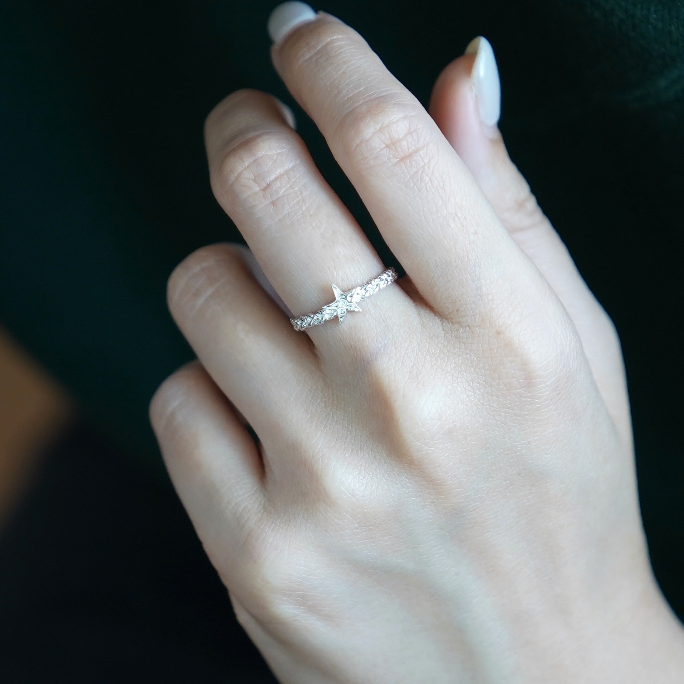 星のデザインとハワイアン彫りがコラボした満足度の高いリングです。