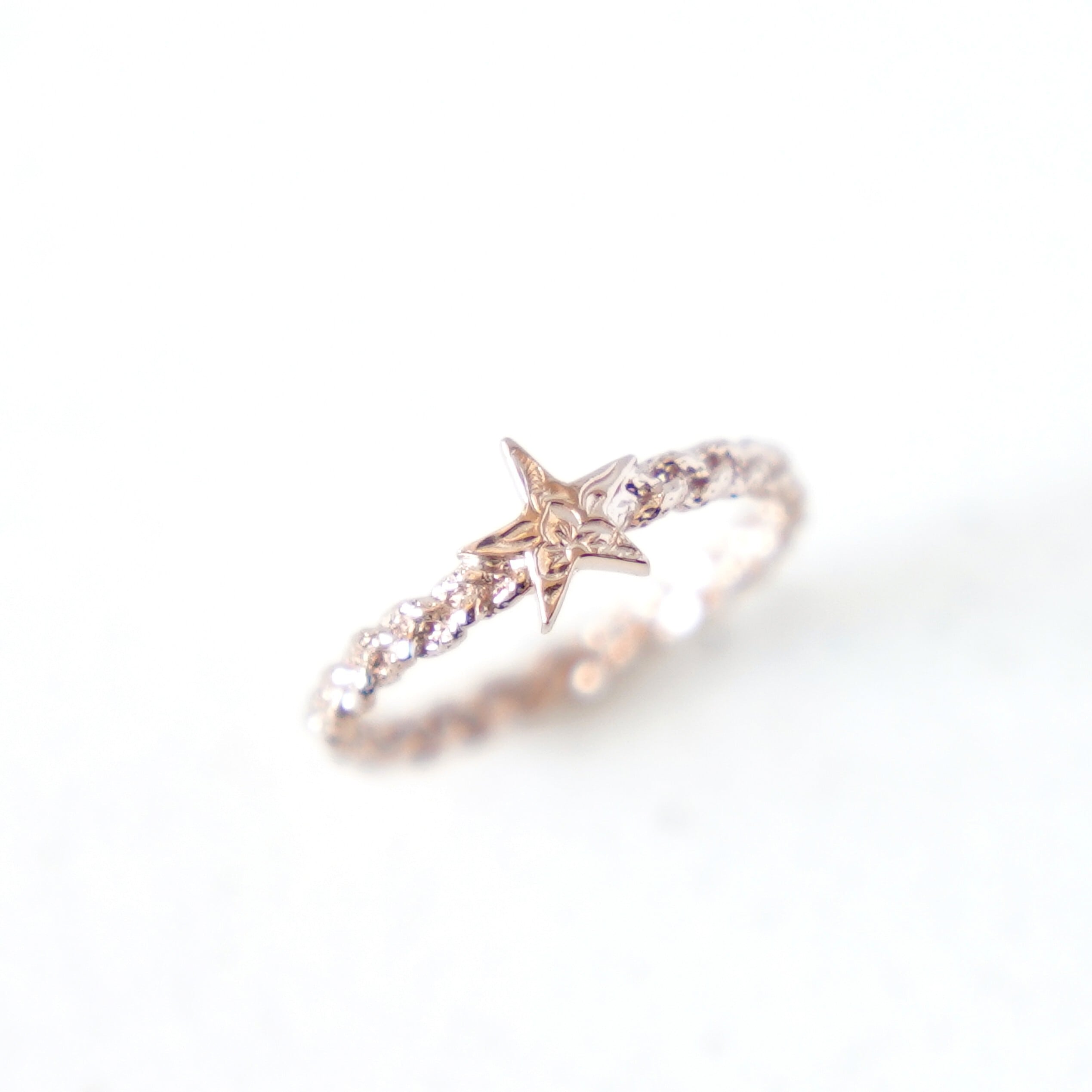 星のデザインとハワイアン彫りがコラボした満足度の高いリングです。