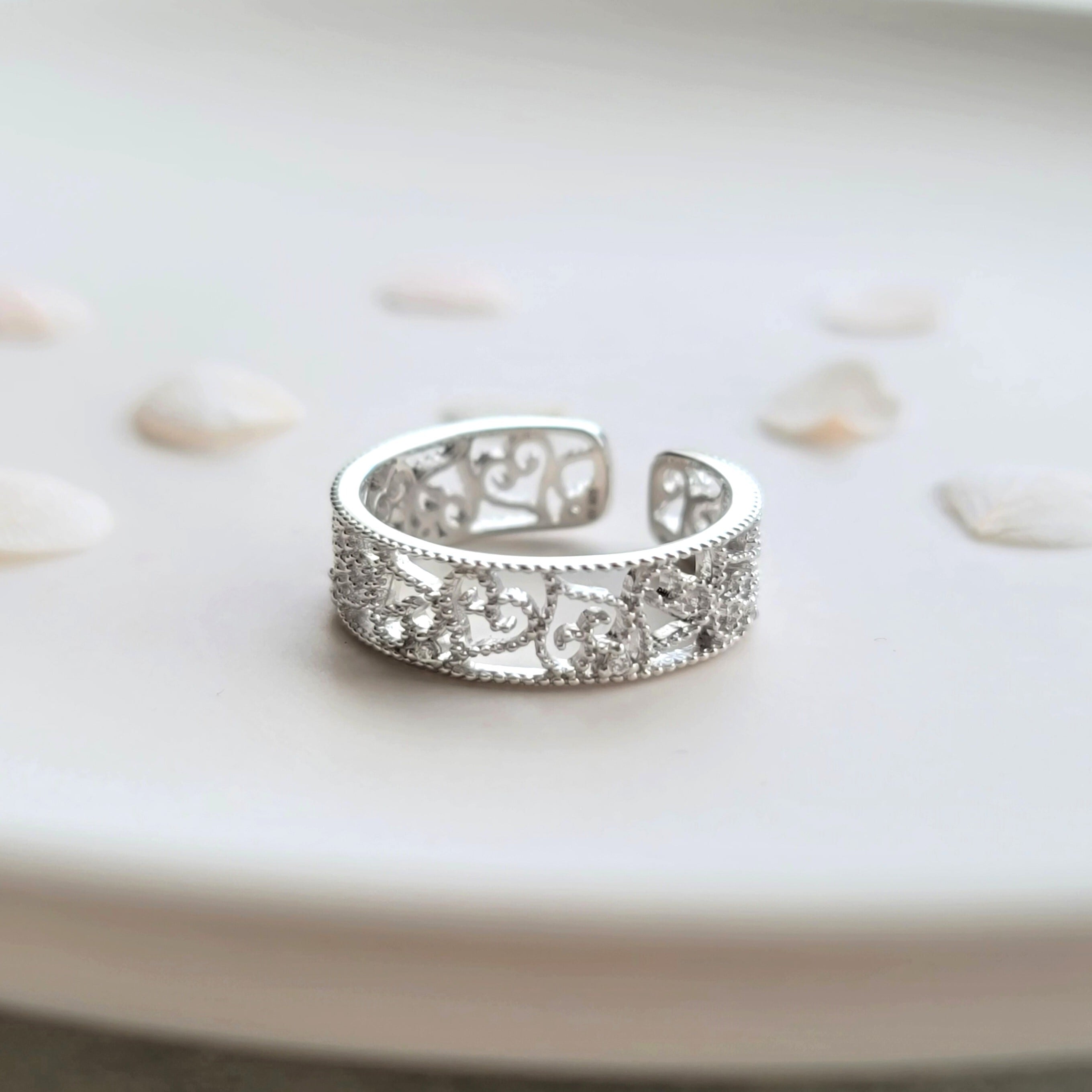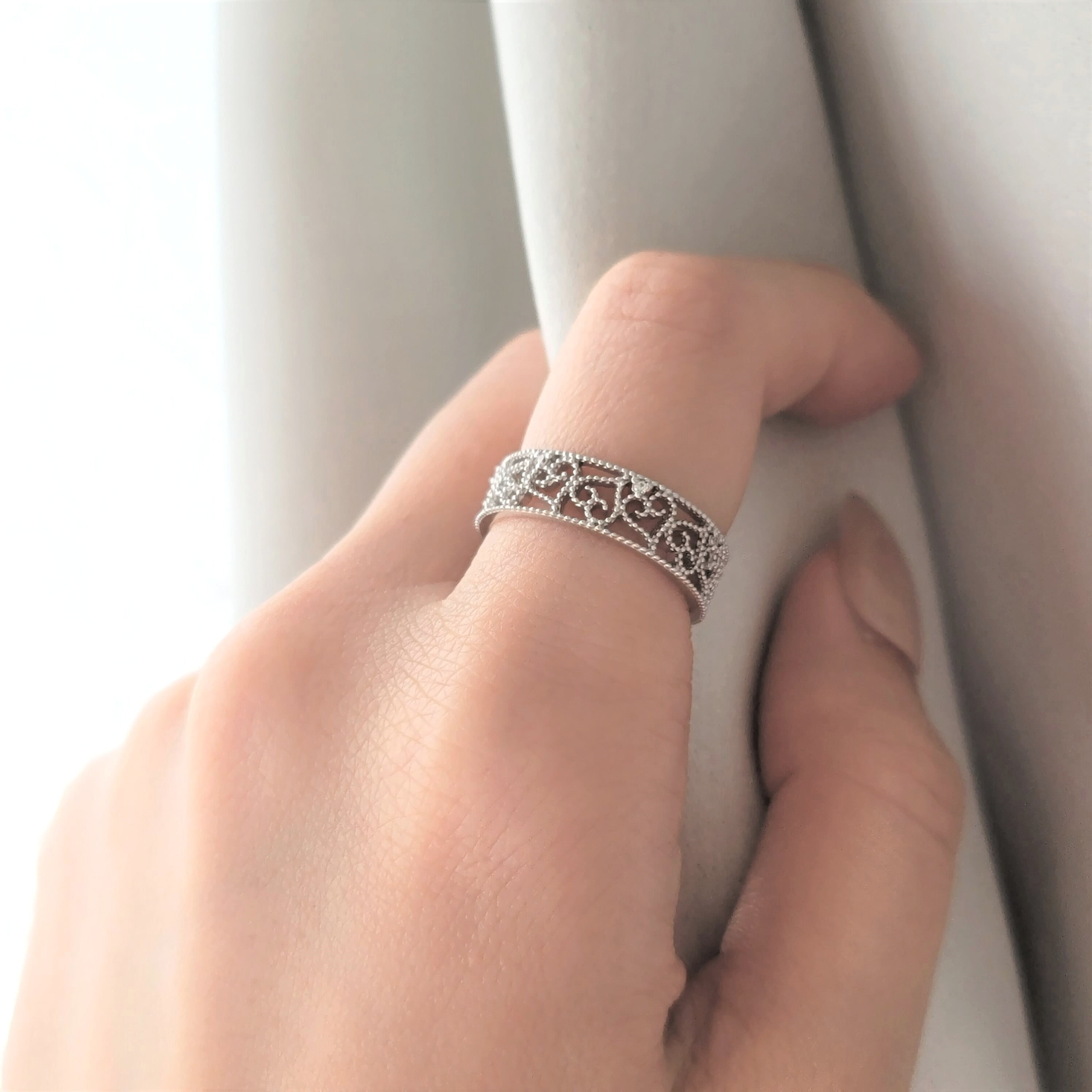ミルグレインのハート?透かしレース オープンリング シルバー《送料無料》