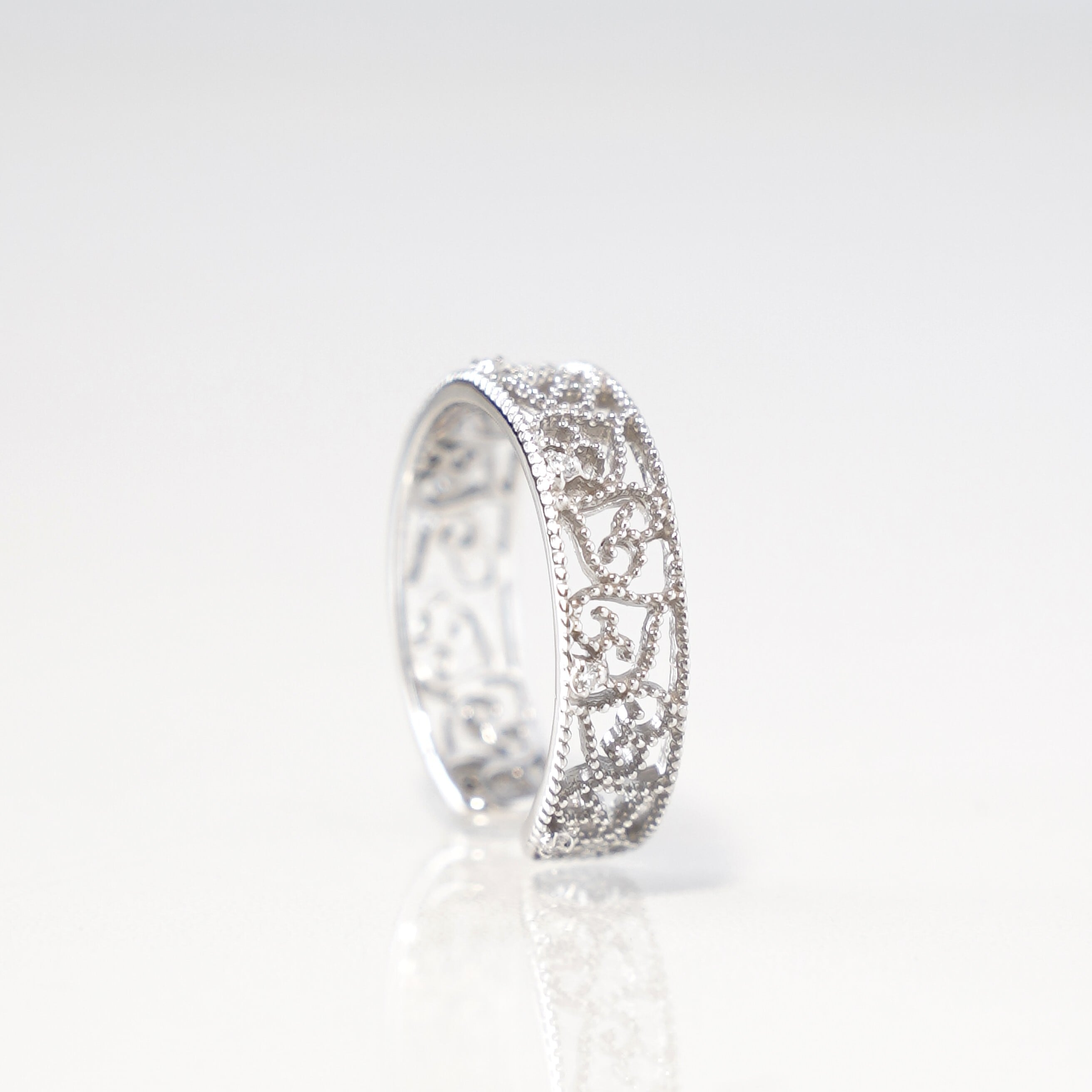 ミルグレイン(ミル打ち)の透かしレースのリング。