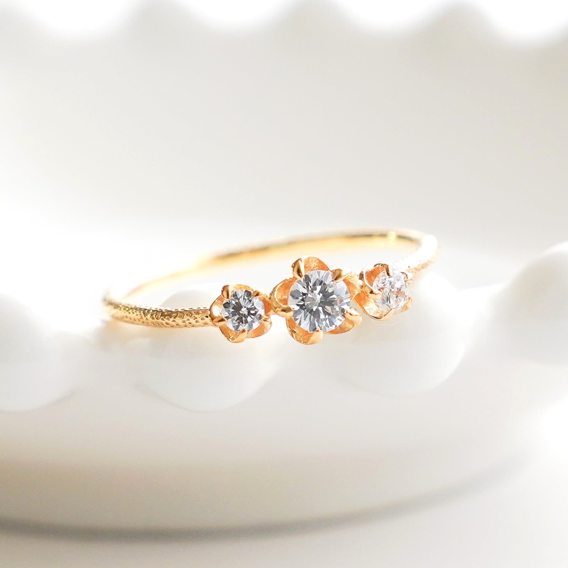 CZ花びらピンキーリング シルバー ゴールド《送料無料》