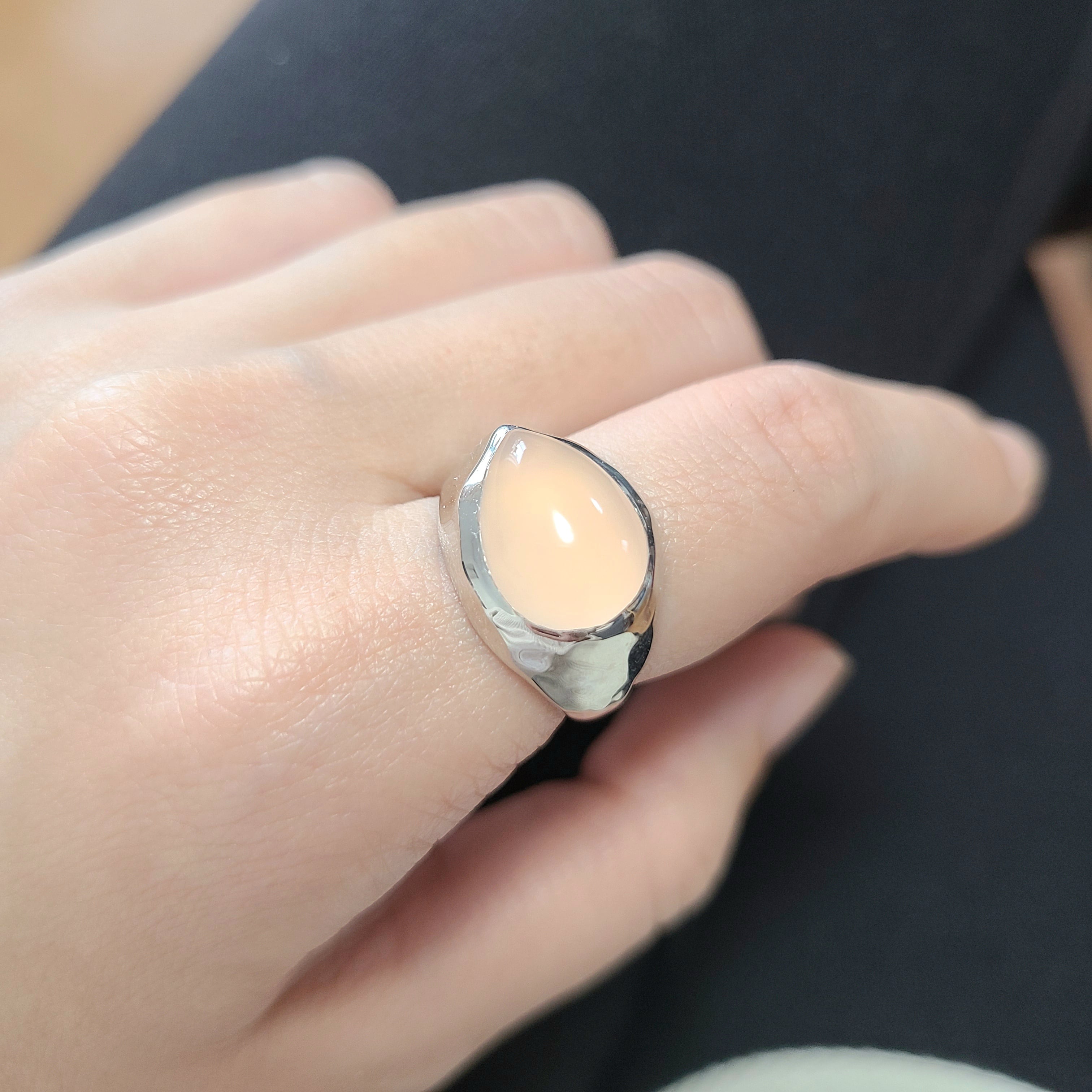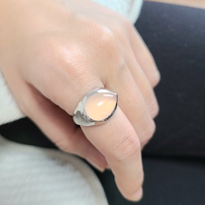 冬のピンク?ピンクカルセドニーのペアシェイプリング PY-233《送料無料》